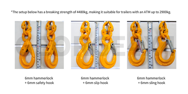 - 7/8mm hammerlock+ 6mm hook suit for trailers with an ATM up to 2900kg