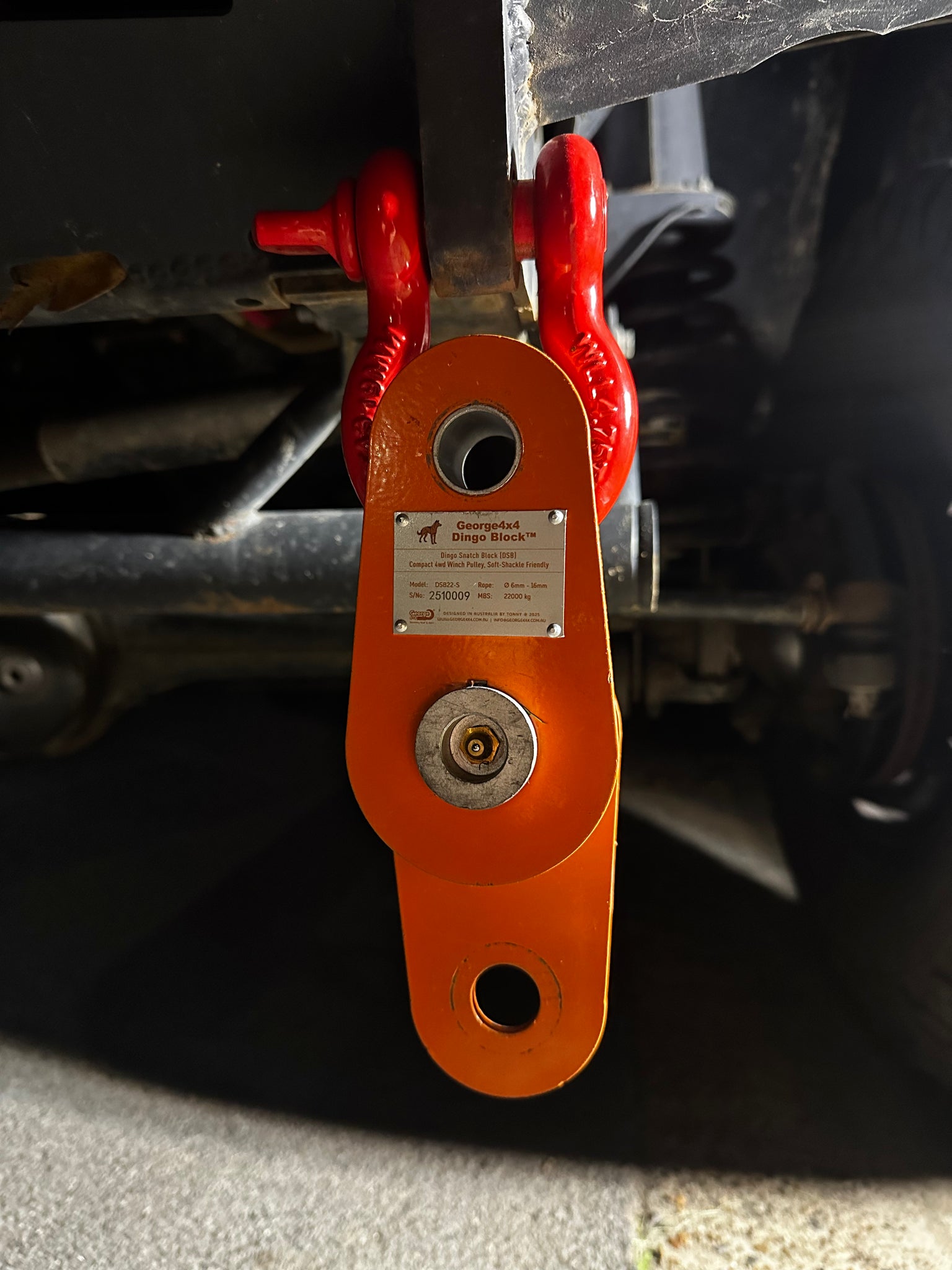 • Dingo snatch Block with steel shackle in action 4WD Winch Pulley George4x4 recovery gear