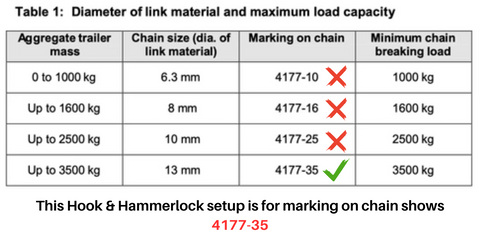 Ford Everest Kit: Hammerlock and Self Locking Hook & Shackle for Trailer Chain 4177-35 and 4177-25 (or Caravan or Camper)